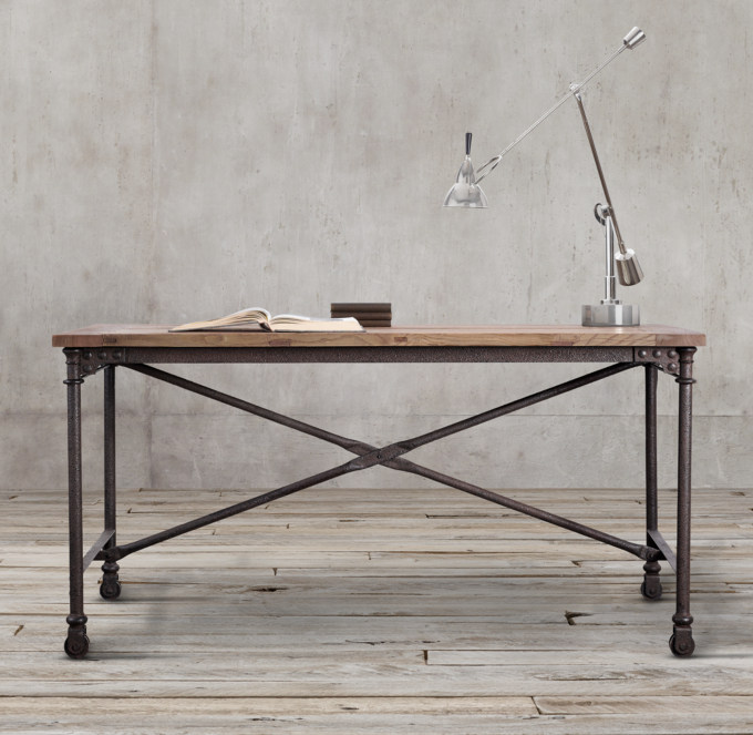 Restoration hardware desk inspired by 1940s airplanes muebles st james collection from restoration hardware offices desks flatiron desk with images wood and metal desk rustic desk In near perfect condition, this beautiful, sturdy desk is made with antique reclaimed elm and a heavy steel frame. Restoration hardware is the world's leading. Desk is located in manteca, ca. This trim and narrow desk will fit into those small spaces while not taking away from your industrial style.